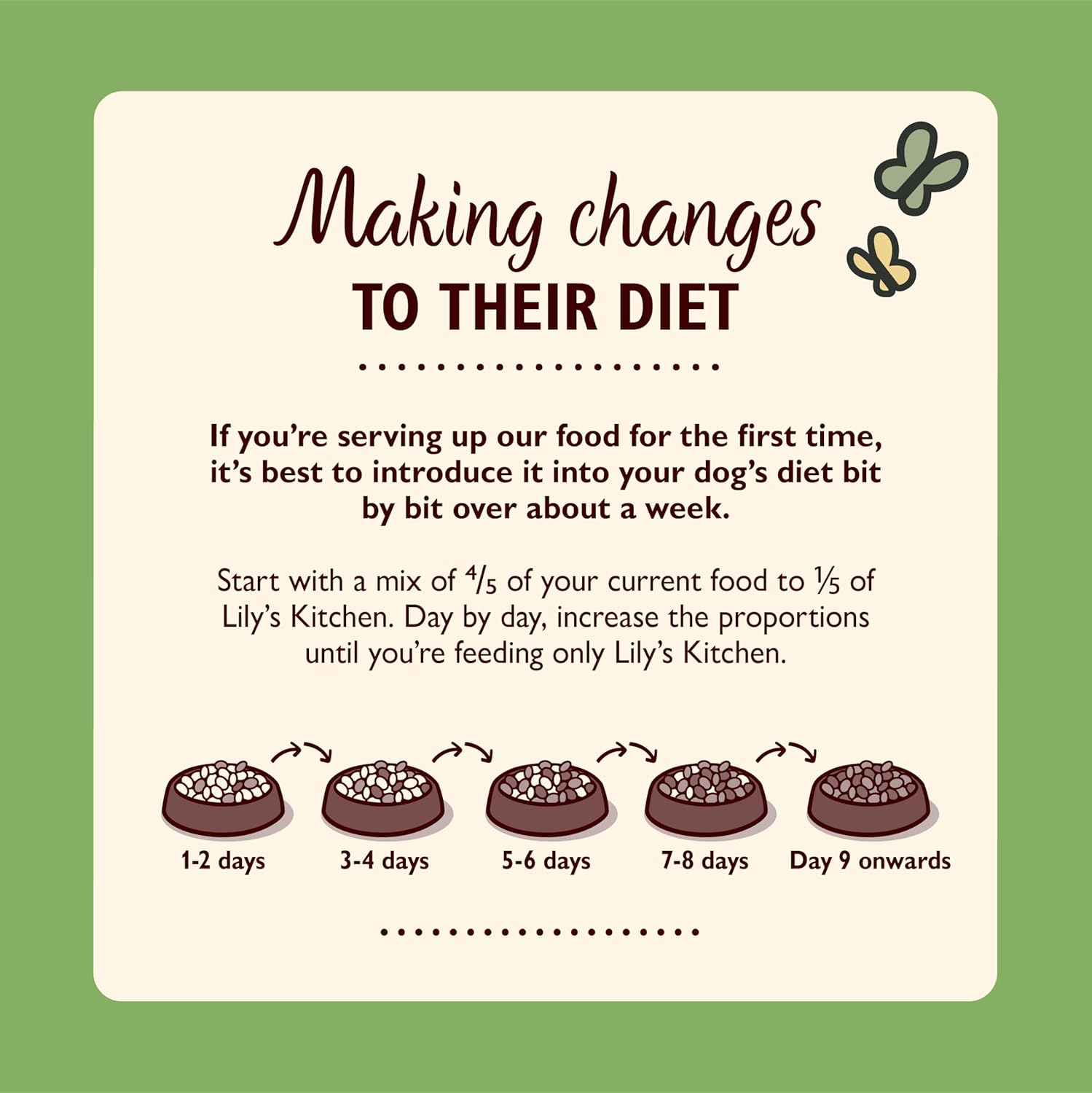 We make this recipe with wholesome, naturally nutritious ingredients – freshly prepared meat, vegetables, fruits and herbs – to produce a delicious, digestible food for dogs. We only ever use proper meat in our recipes: no meat meal, no bone meal, no rendered meat. Our unique recipes don’t contain any cheap fillers – like wheat, corn or soya – and they don’t contain any nasties.